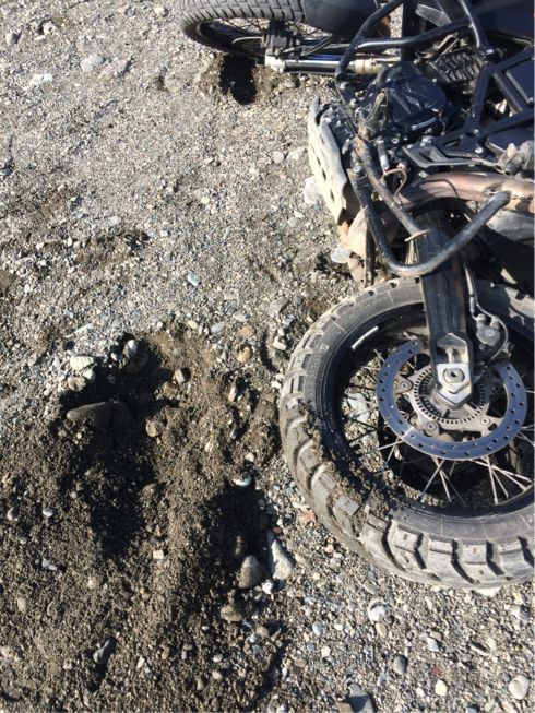スタンド立てなくてもバイク立ってる。