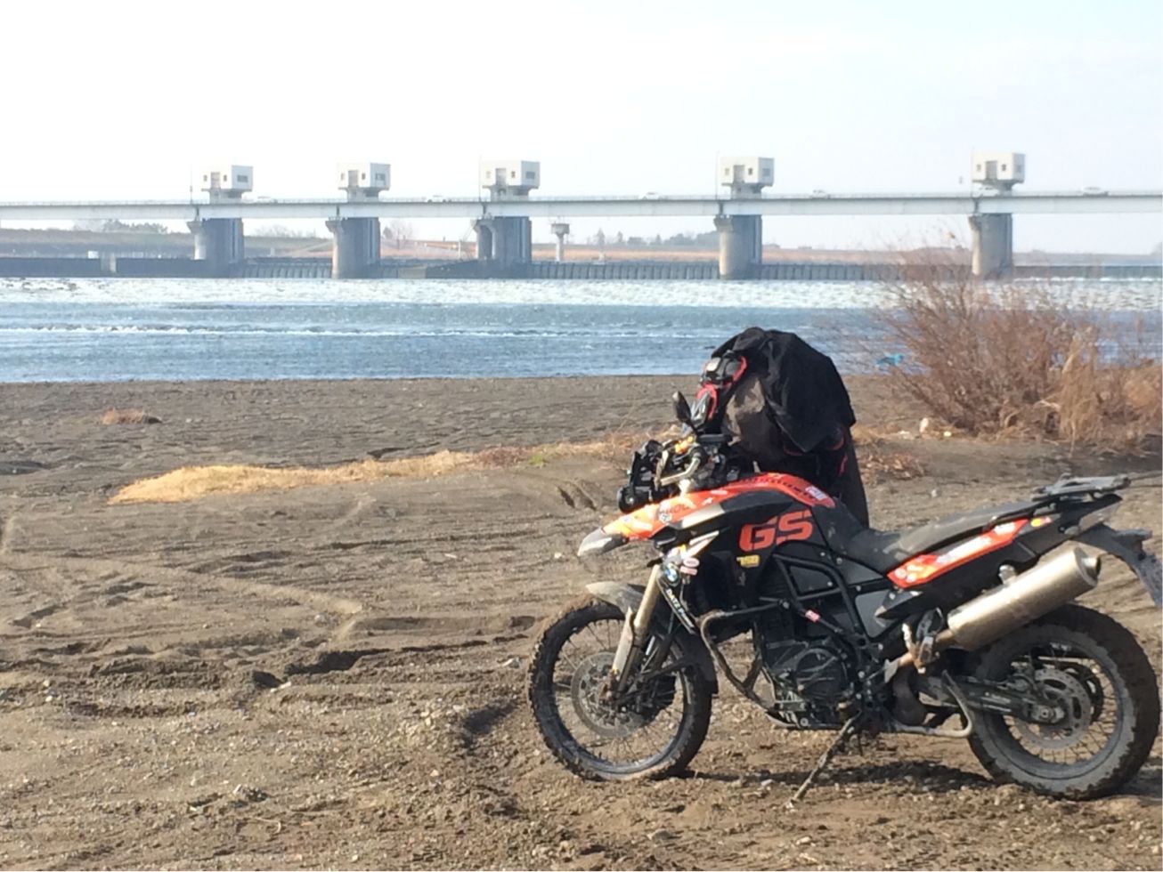 その気温に耐えられる装備のまま200kgのバイクを起こすと、汗だくです。超汗だくです。暑いです。さすがにバテます( ̄Д ̄)ノ