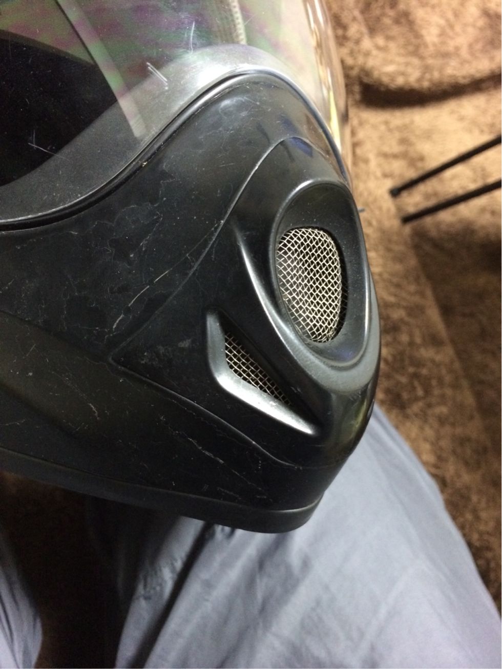 ヘルメットの隙間とアミアミからガンガン風が入る_| ̄|○