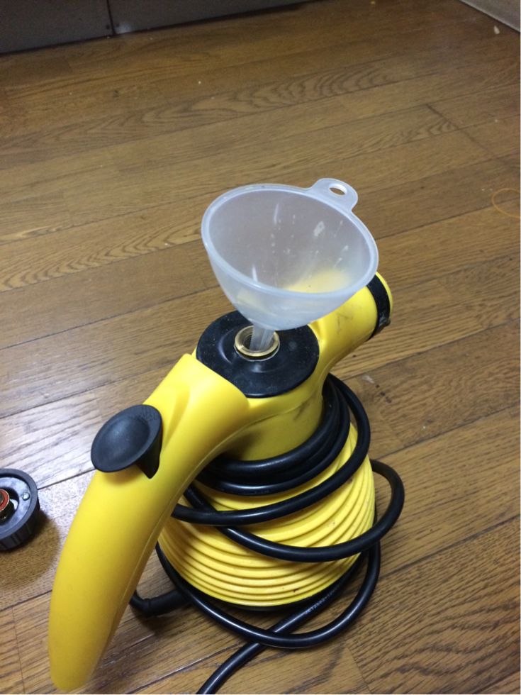 F800GSのエンジン周りはごちゃごちゃしてて、とても洗車がし辛いんです。そこで、細かい所の洗浄用にこのスチームクリーナーを買ったんですが、