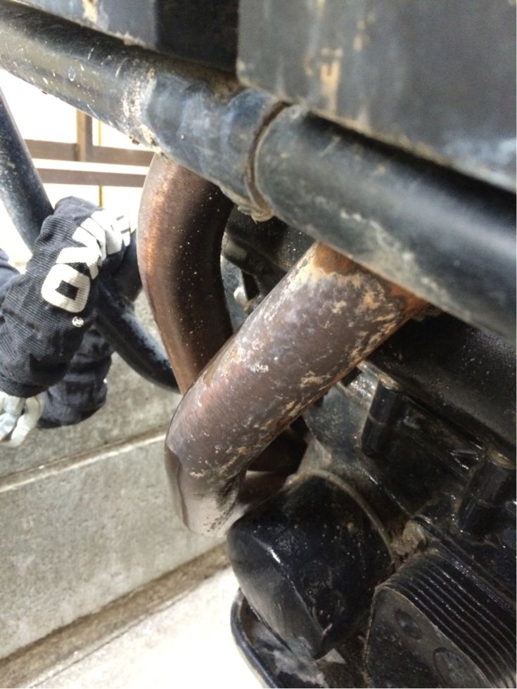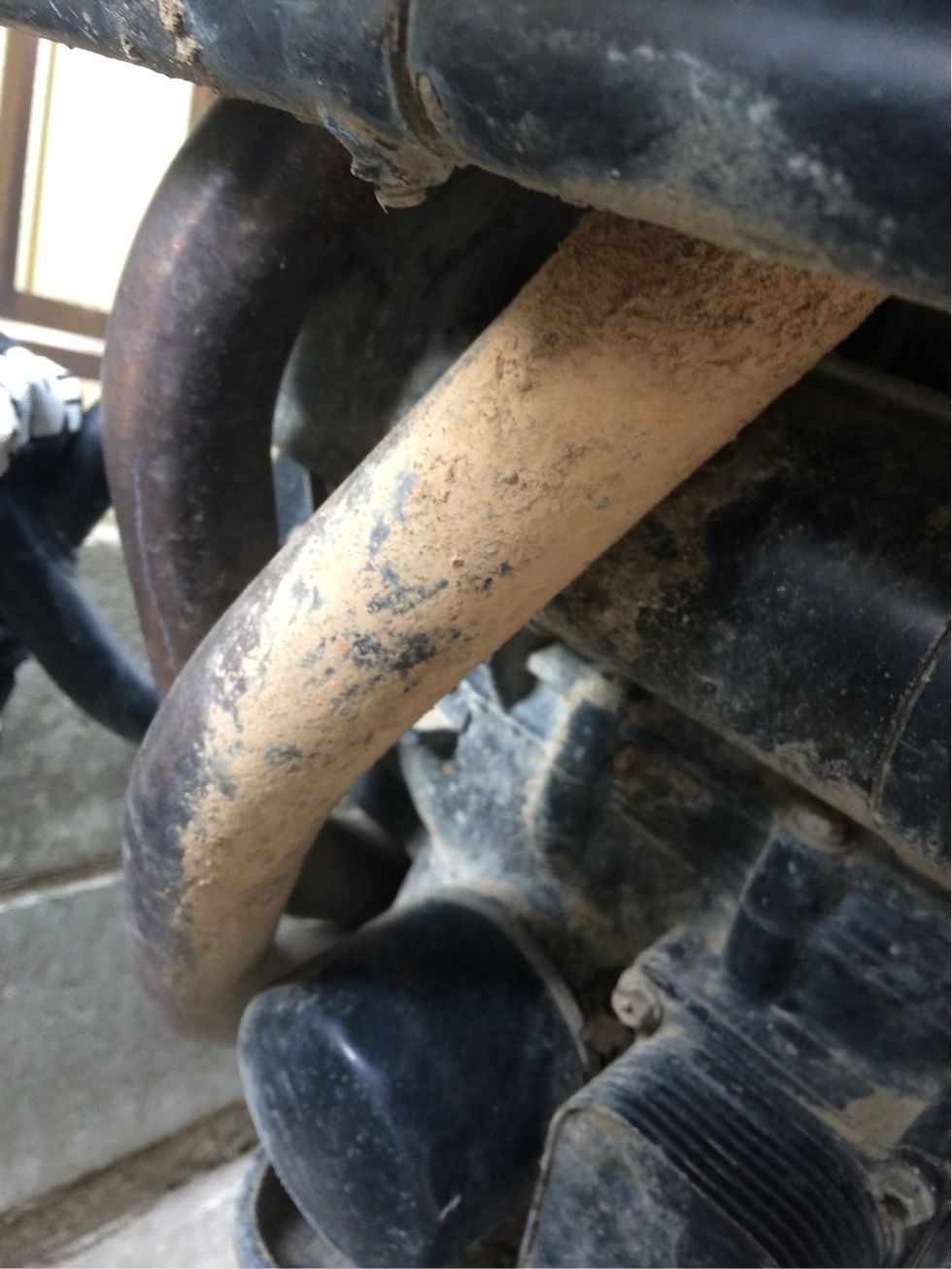 と、思ったんですが、何の違いがあるのか分かりませんが、エキパイの付け根部分の泥汚れは上手く落ちませんでした。